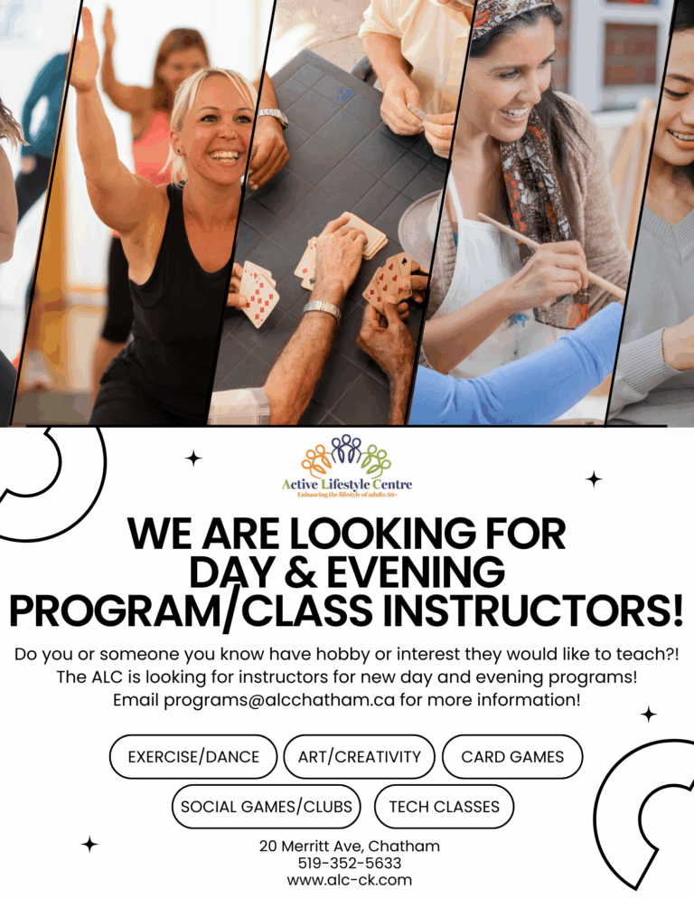 See the bottom of this page for an application to Volunteer at the Active Lifestyle Centre!